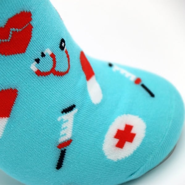 Wij leveren one-size-fits-all-sokken, dus geschikt voor iedereen zowel uw mannelijk als vrouwelijk personeel. Ook voor Kerst ontwerpen wij graag kerstsokken voor uw personeel. In het verleden hebben wij voor tientallen zorginstellingen sokken mogen maken. Vaak voor De Dag van de Zorg, Dag van de Verpleging of voor de Kerst. Wij maken graag met u medische sokken voor verpleegkundigen, chirurgen en artsen.