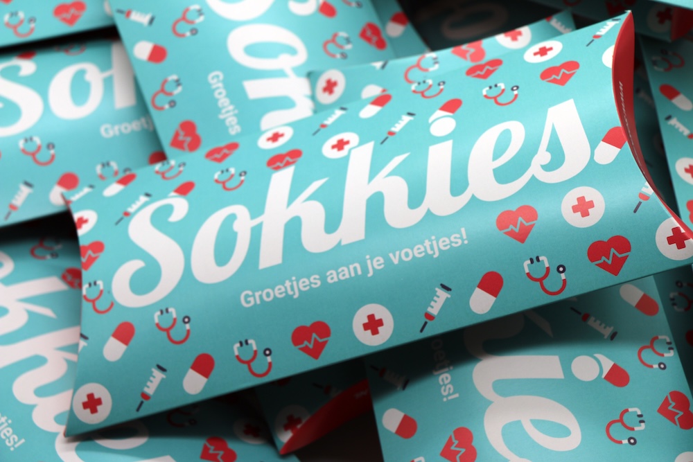 De helden van de zorg verdienen een geschenk, dit realiseren wij graag samen met u. Bij Sokkies ontwerpen en produceren we al jaren de kleurrijkste designs en vrolijkste sokken. Ook voor zorginstellingen merken we dat sokken als een geweldig cadeau wordt ervaren. Maak van uw personeel ambassadeurs door ze uw bedrijfslogo te laten dragen. Zo denken ze elke ochtend aan u, wanneer ze de sokkenlade opentrekken. Ook patiënten zullen hier van genieten!